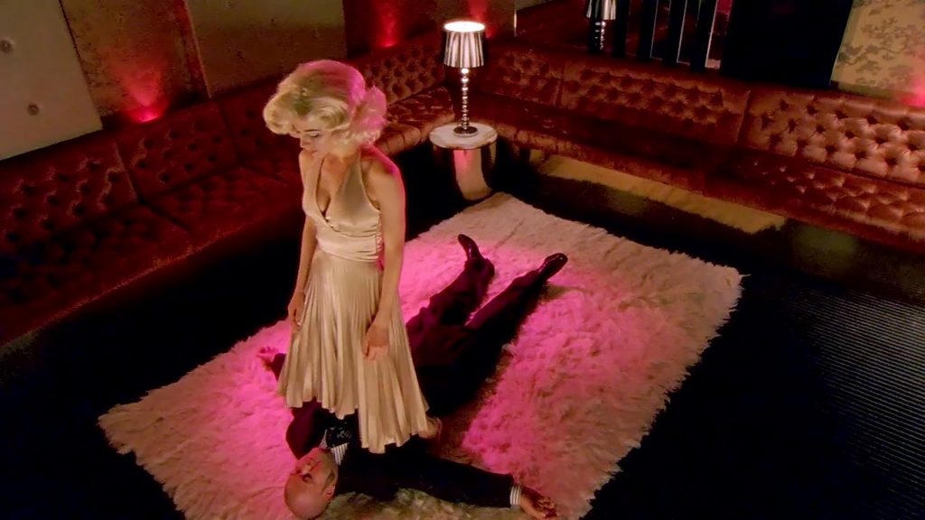 Bojana Novakovic shows her big naked tits and puffy nipples in a sexy scene. She teases a guy with some blue-turquoise feathers and we have a close view of her and nipples. Then, the guy is licking her as she seats on his face. A great nude scene from Satisfaction.