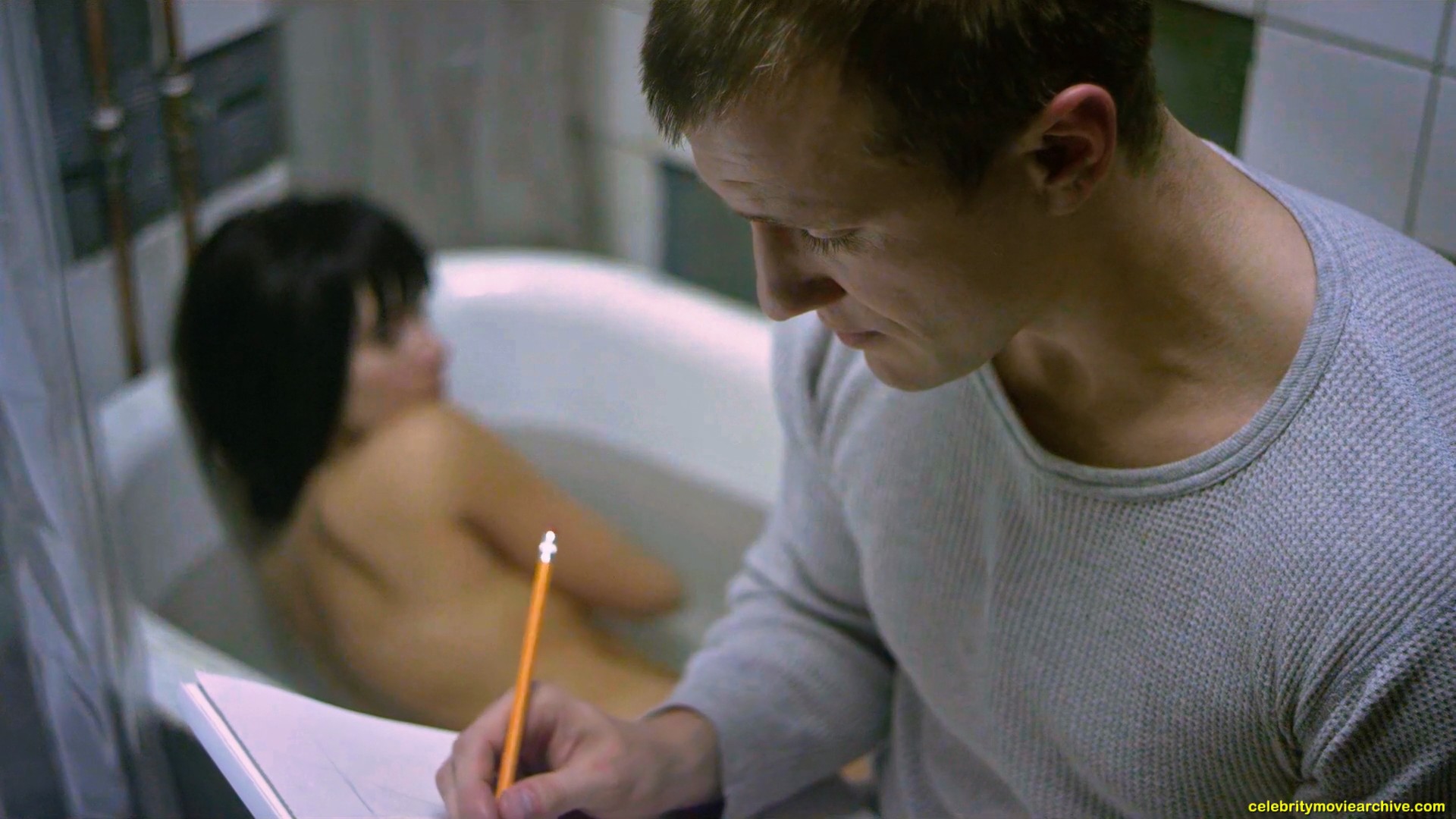The next couple of scenes are from a movie called “A Beautiful now”. In this scene we see Abigail Spencer posing topless in a bathtub revealing a glimpse of the side of her right breast while a guy sketches her as they’re chatting.