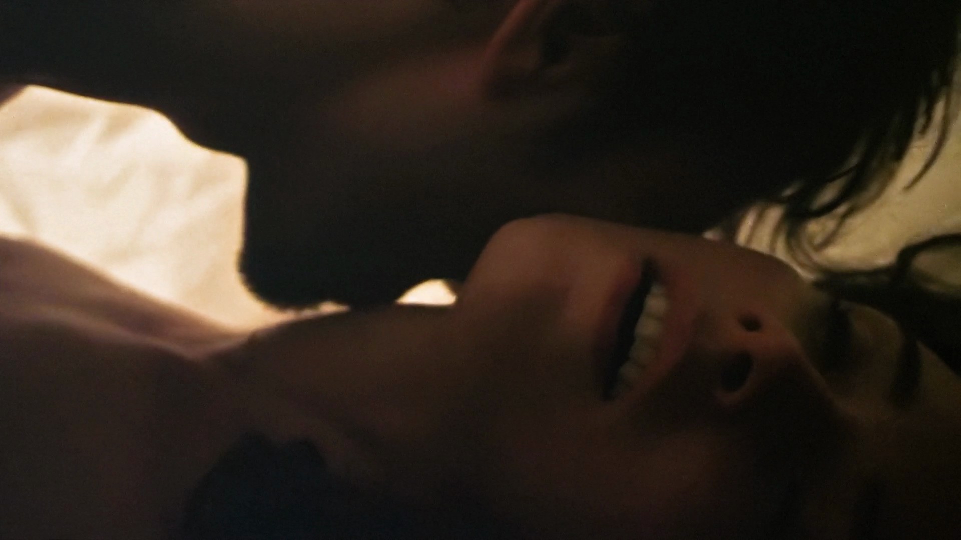 In the next scene we see Abigail having sex with some man under a sheet as they flip back and forth between her on top of him and him on top of her all while showing off the tops of her breasts and her left breast from the side.