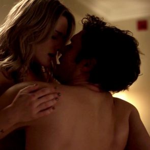 The next few scenes are from the famous TV show called “Californication”. In the fist scene we see Addison Timlin as she straddles a guy in a pair of panties as he pulls her shirt over her head to reveal her big boobs. They ‘re having sex, Addison is now naked as she rides the guy with her boobs in sight and her bare ass visible from behind.
