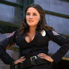 In the next scene Addison Timlin is pulling her shirt over her head to reveal her huge nice tits, as she jumps into a guy’s arms and kisses him before someone knocks at the door. We see Addison ‘s breasts again when she pulls her top back as the guy goes to answer the door.