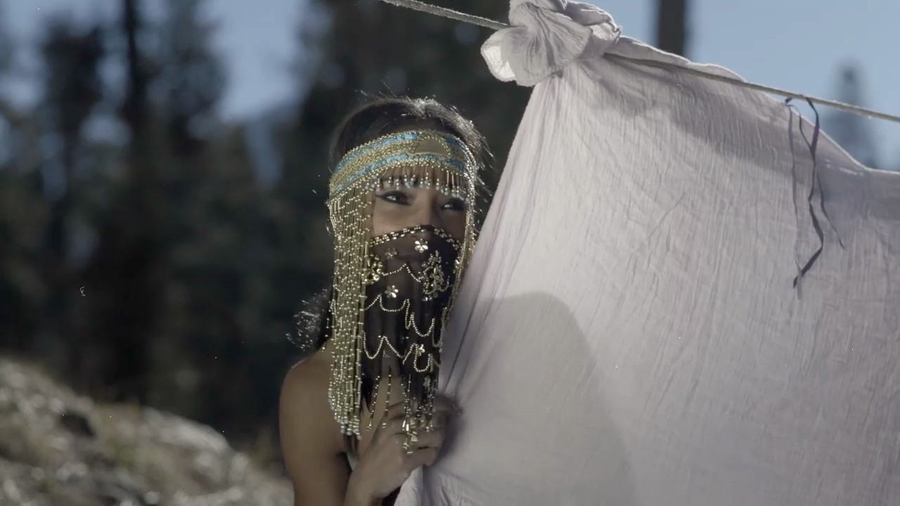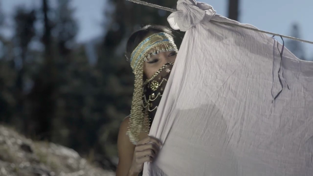 The next scene is from the “Little Red Riding Hood” movie. Alanna Forte is fully nude behind a line of clothes in the rain, her breasts and butt seen from the side in a silhouette. A man then comes up and looks out from behind a see-through top, revealing his right breast. Then we see her from another perspective in which her butt is visible, as well as her left breast from behind as she starts to get dressed.