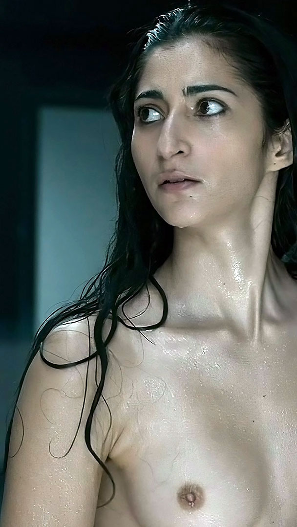 The first scene is a shower scene! We can see Alba Flores perfect titties as she’s taking a shower! She’s taking a look from the shower and that’s when she gives us a glimpse at her boobs and nipples!