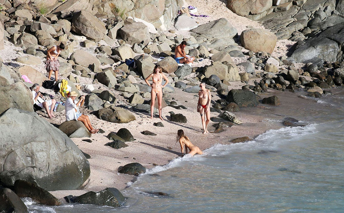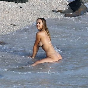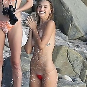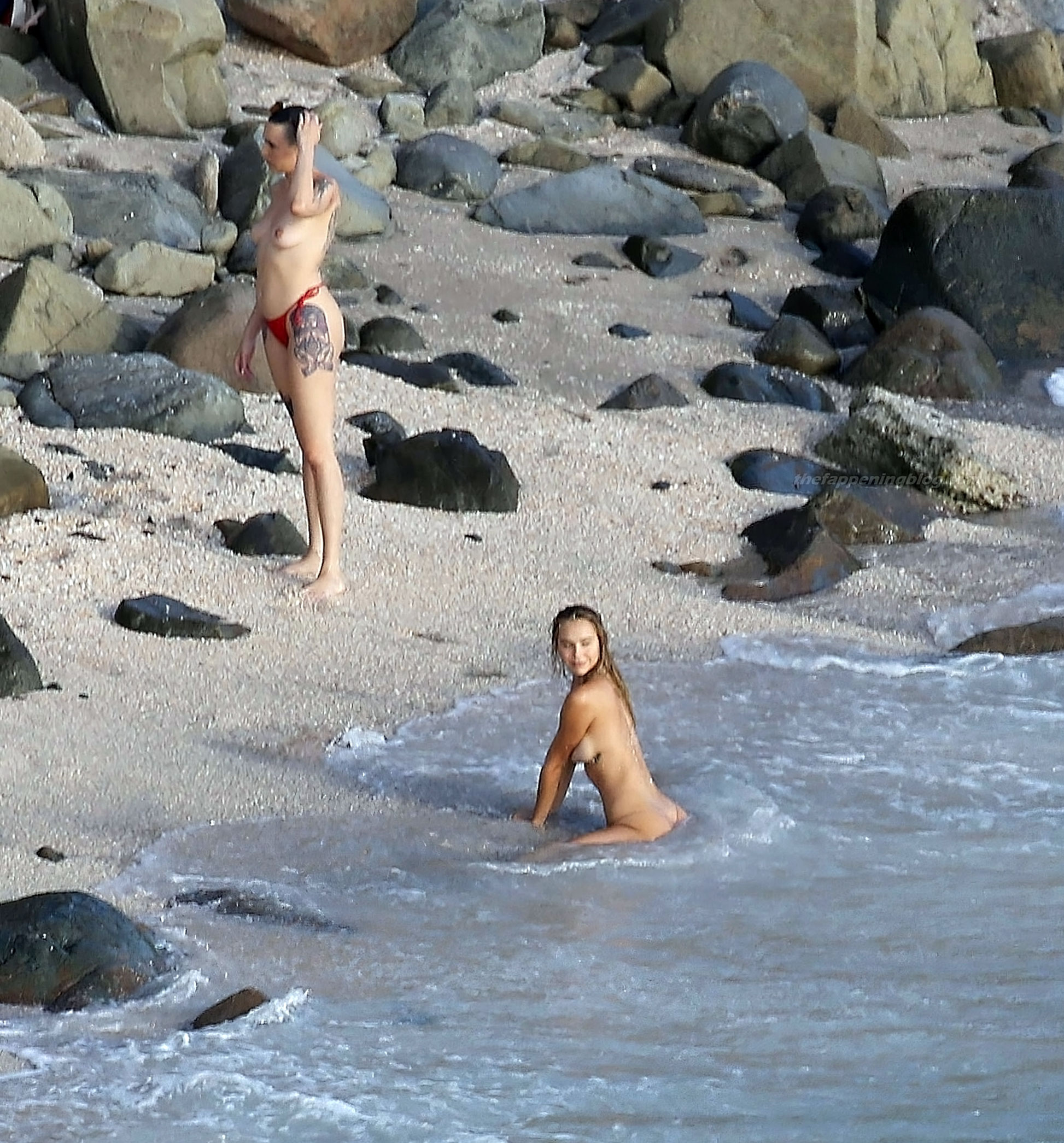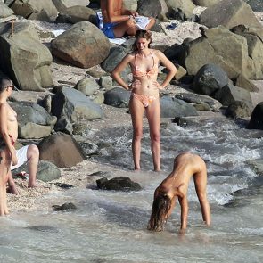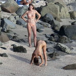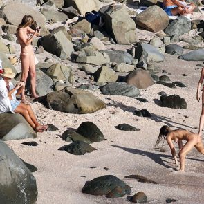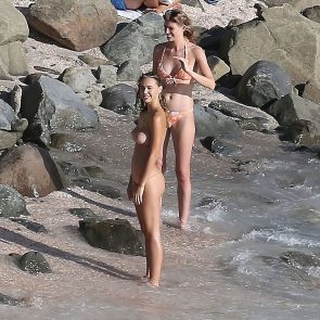 Check this out guys! Our favorite brunette did something a bit unexpected, luckily, some sneaky paparazzi were already following her, and they shared that moment with us! These photos were taken at the end of last year in St. Barth’s! Alexis Ren was topless with just a few strings on her ass, I can’t even call that thong.. Also, she was with a couple more of her topless friends, so you can enjoy in their tits as well!