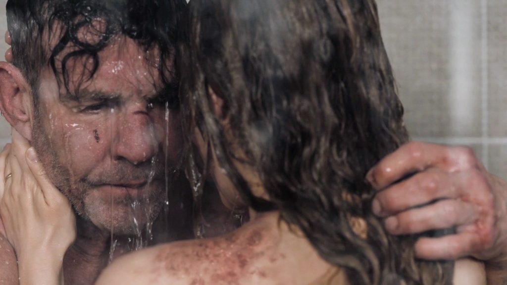 Here’s my favorite scene! It’s from a TV show called “Hassel”. In this scene we see Aliette Opheim naked in a shower. She’s bent over when a guy walks into the bathroom and talks to her. We see her breast from the side and then she stands up, kissing the guy before he disappears out of view to begin to go down on her.