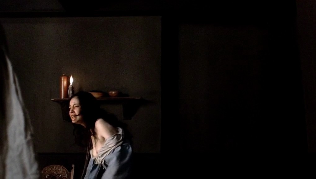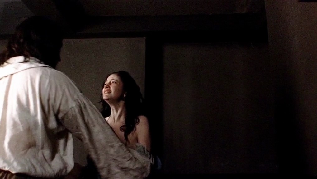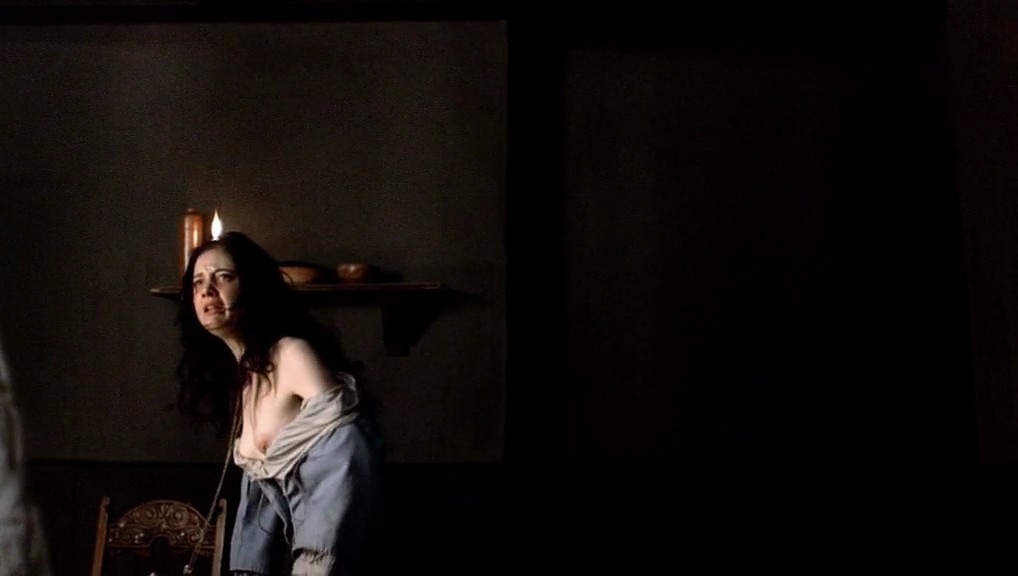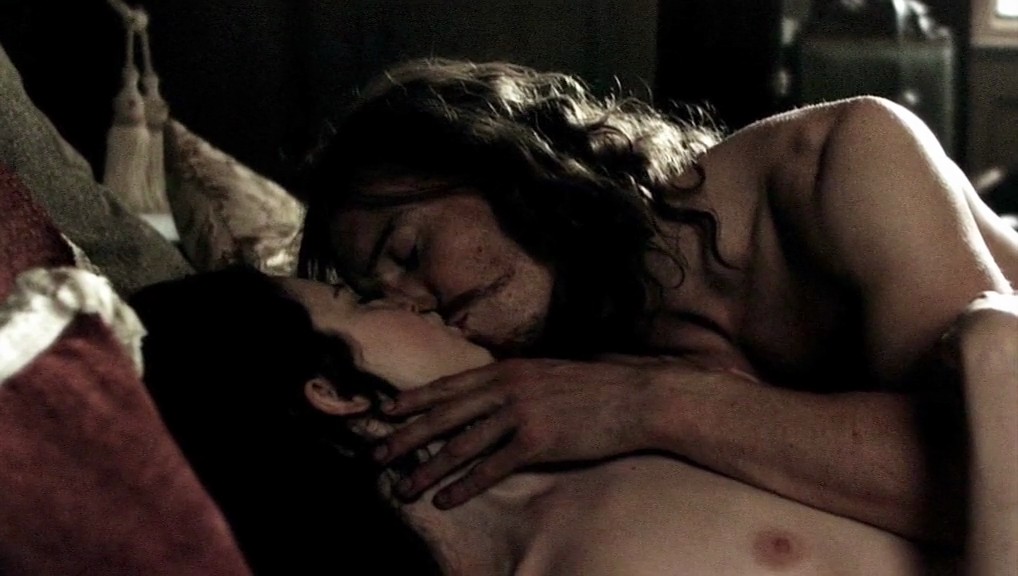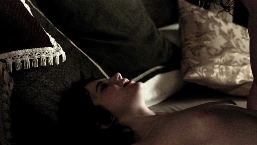 Next couple of scenes are from a movie called “The Devil’s Whore”. Andrea Riseborough takes off her dress as a man watches, then reveals her breasts as she lies under a man who has sex in bed.