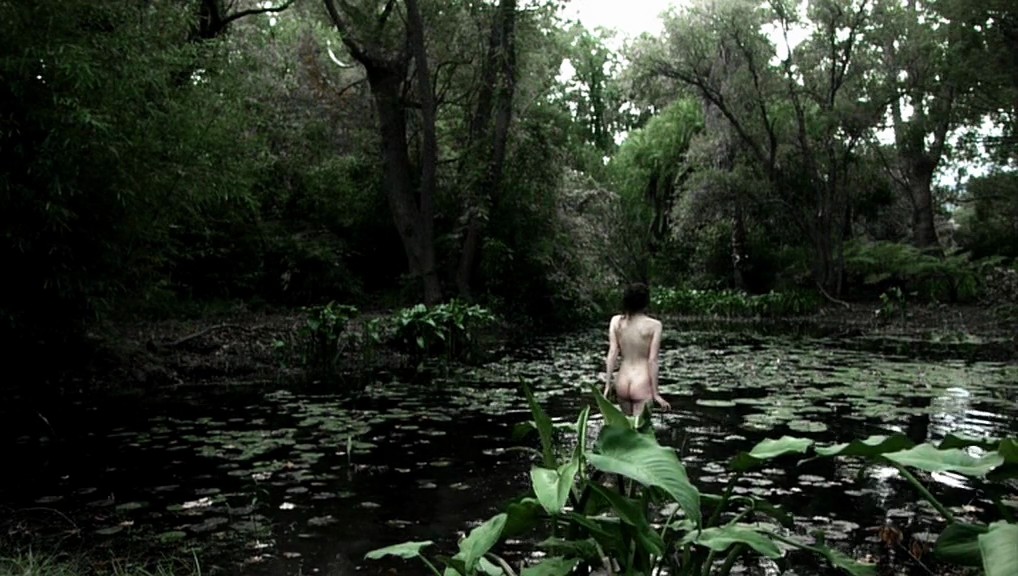 Andrea Riseborough naked as she slowly strolls into a pond as some man watches from behind. Andrea giving us a glimpse of her ass as she remains above the water as she walks.
