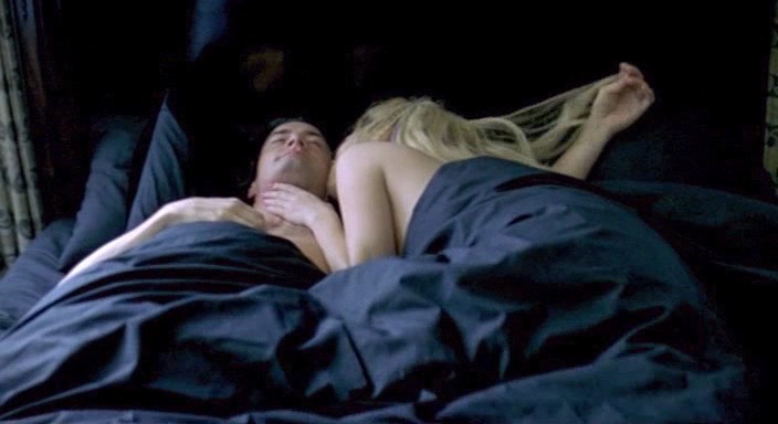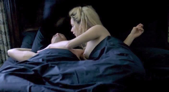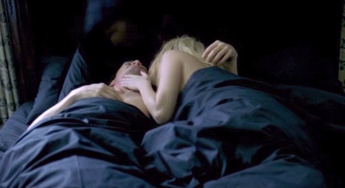 The next scene is from a movie called “Rogue Trader”. Anna Friel is going topless as she’s going out with a man on a bed.
