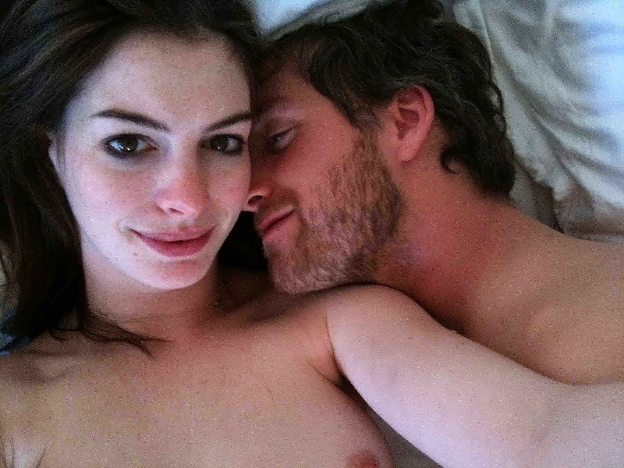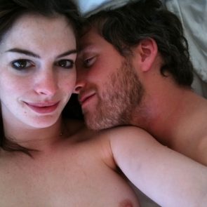 And even after her lawyers gave a great effort to stop these photos from spreading all over the internet, we have them again! We are eager to share with you all leaked photos of Anne Hathaway nude with her boyfriend! She showed her boobs in the bed, in front of the mirror and while she’s taking selfies to send them to her boyfriend!