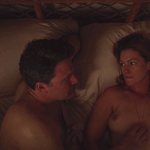 The next and sadly the last scene for today is from a movie called “The Last Thing He Wanted”. In this scene we see Anne Hathaway from above a bed as she’s lying next to a guy, topless,and on her back, her character just had a masectomy so they digitally removed her left breast.