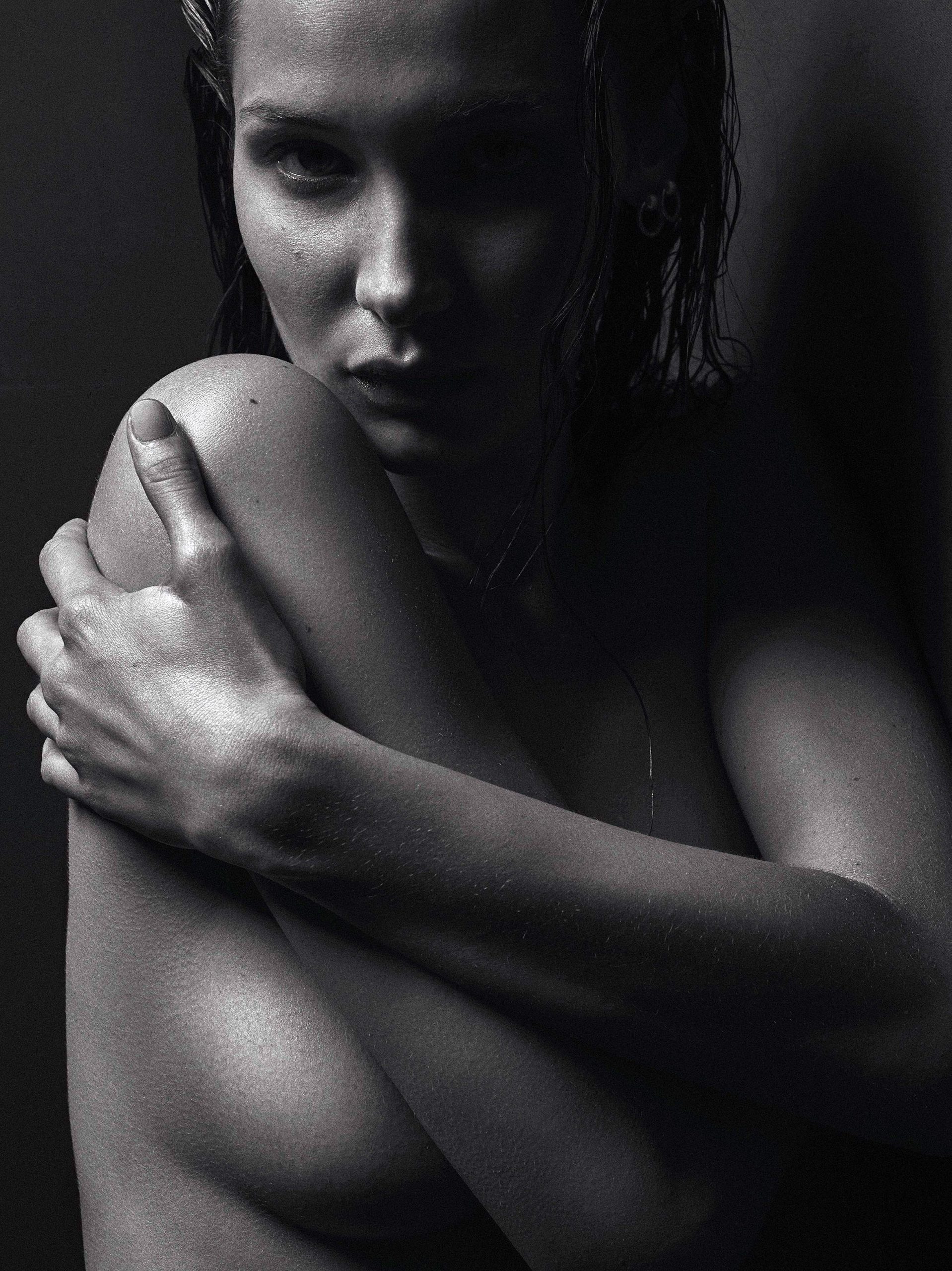 Let’s now take a look at some new Bella Hadid naked photos! She has done a shoot for some modeling agency she’s been working for and she once again appeared fully naked! Here are the photos, Bella’s whole body is covered in some silver glitter! Is she an alien of some kind?