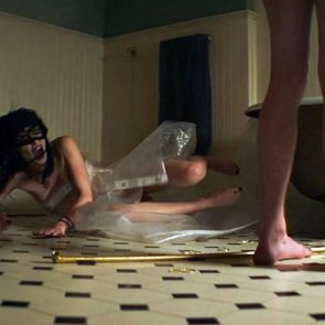 The second sexy scene is from a movie called “I Still See You”. In this scene we see Bella waking up all sweaty, but she’s not wearing any bra, so we can see her poky nipples through the shirt she’s wearing!