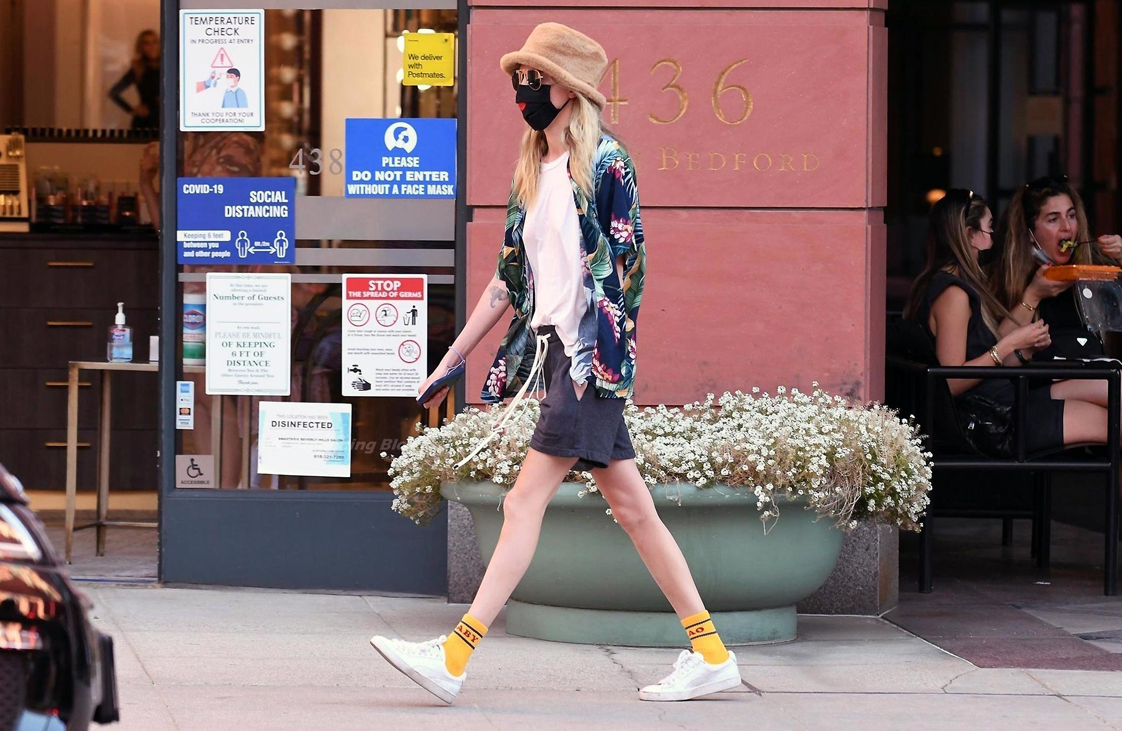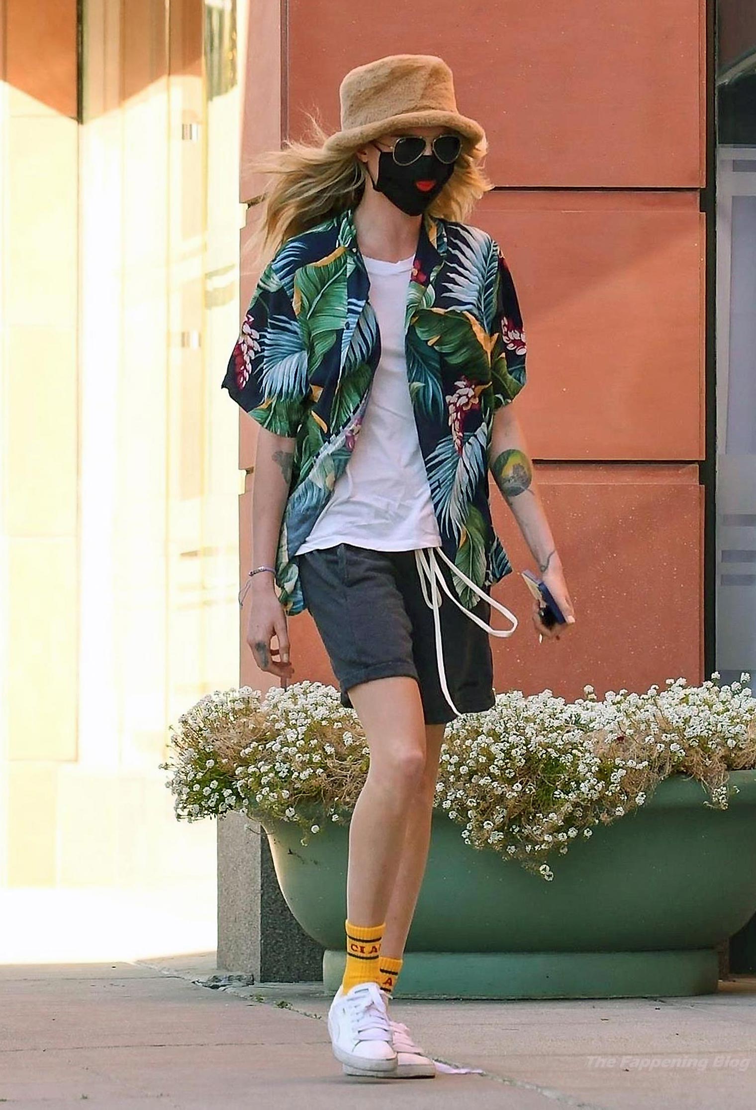 Take a look at this, boys! Your favorite Hollywood lesbian likes being braless! She hoped that no one would remember her with that mask on! Our trusty paparazzi, on the other hand, did! Either that, or she simply doesn’t give a damn! And all of those explanations seem to be valid to me haha! Anyway, guys, keep scrolling to see Cara Delevingne pokies in public! To be frank, she seems to be homeless!
