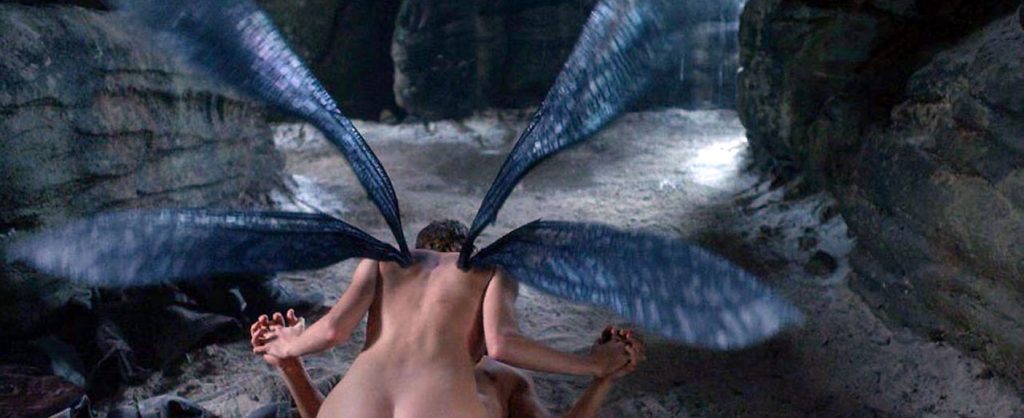 The first two scenes are from a movie called “Carnival Row”. And here is the first scene! Cara Delevingne making out with a man as he undresses her, exposing her breasts before she climbs nude into his lap to have sex, her fairy wings unfurling behind. The guy then lies back on the floor and Cara rides him, revealing more breasts and her ass until she collapses down next to him after finishing.