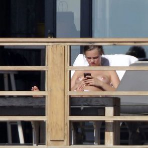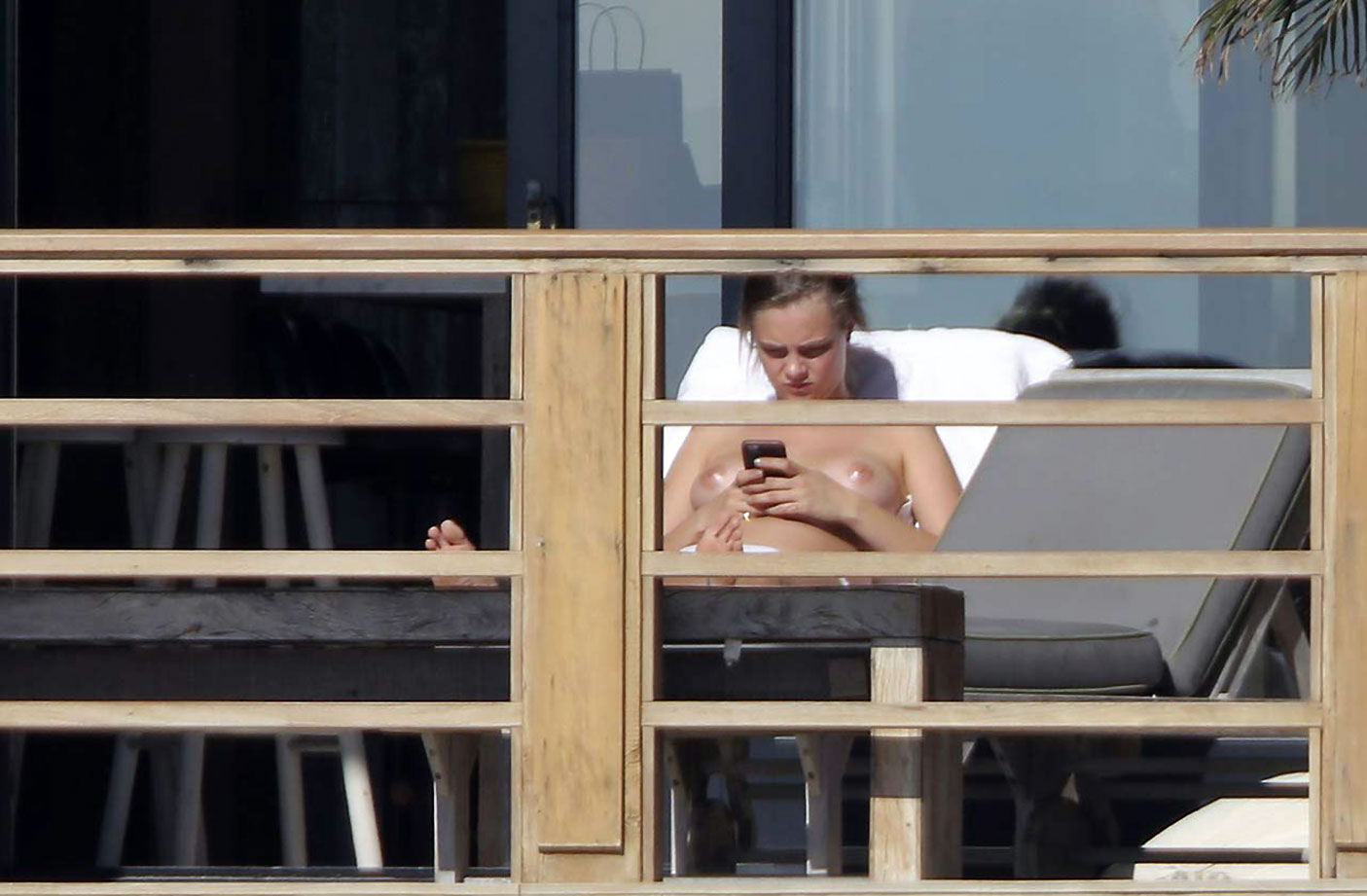 We all know that celebrities can’t get even a minute of privacy. And that comes in handy for us when they’re doing something that we like to see and they don’t like to share! So, here are some pics of Cara Delevingne topless! She’s sunbathing on all of these. But on some she’s alone on a balcony, and on the others she’s around people at the beach or the pool!