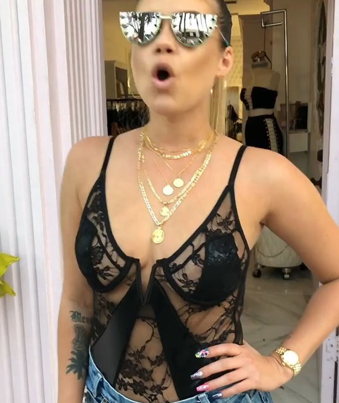 Here’s a gallery full of Chanel West Coast nude and sexy photos! This busty blonde is definitely an eye catcher! Here you’ll find some pictures in sexy lingerie or sleep wear. But next to it you’re also going to see her naked, sitting in a bathtub, completely soaked with water! There are also some pictures in which she’s showing us she doesn’t mind us looking at her boobs! It’s because she’s in sheer tops and bras, and she’s flashing her titties everywhere! And don’t get me wrong, I’m absolutely loving poky nipples showing through everything!