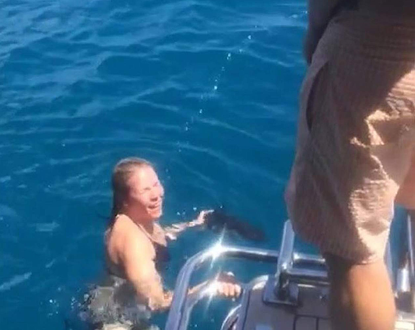 So, here are some pictures and a video of Chelsea Handler swimming in the ocean. All of a sudden we see some guy standing over her on a boat and peeing on her face! That guy later turned out to be Jason Biggs!