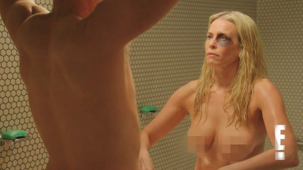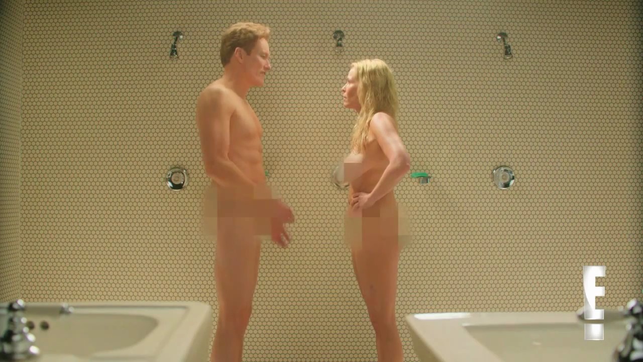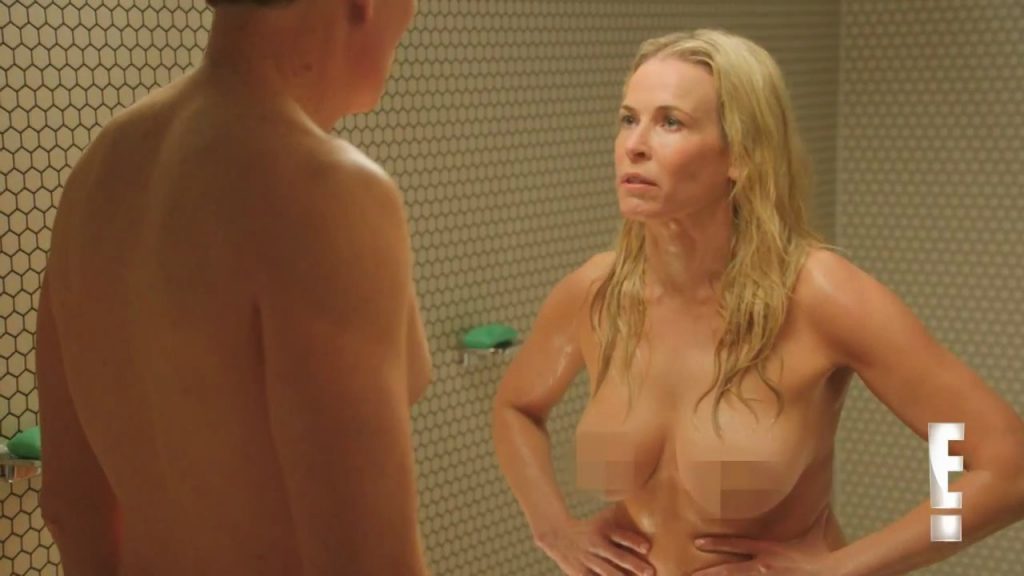 Last scene is here! And it’s from “Chelsea Lately”! Chelsea Handler was totally nude with some blurring over her breasts and between her thighs when she stepped into the locker room with a shower. Conan O’Brien would show up and start her, causing Chelsea to grab her breasts with her hands. Then she lowers her hands, and she and Conan stand naked, and start fighting and fighting, giving each other black eyes.