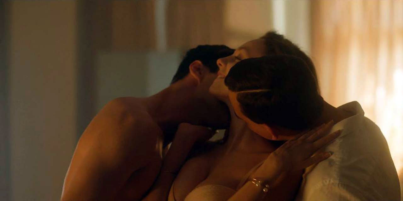 All of the scenes are from a Netflix Series called “Elite”. It’s basically about a couple of teenagers in school. So it actually isn’t surprising at all that most of the scenes are either nude or sex scenes! In the first scene Ester Expósito is on a bed in lingerie. There’s also a guy that’s slowly taking it off! The two have sex, but they’re not alone! A second guy is standing close to them and watching them as Ester Expósito tells him something!