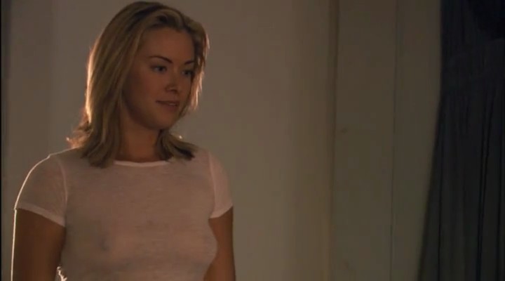 The next couple of scenes are lesbian scenes! And they’re all from the movie called “The L Word”. In the first scene Kristanna Loken and some girl are making out in the kitchen, Kristanna is leaning back on the countertop in a red bra as the girl pulls off her own shirt to go topless. Kristanna’s bra comes off so that we can see both girls’ breasts while they’re both kissing lesbian.