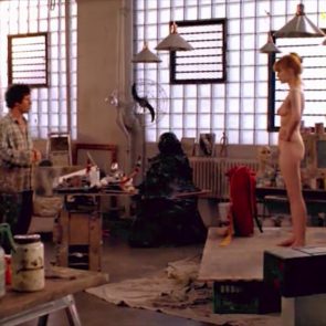 The next nude scene is from a movie called “Maze”. In this scene we see Laura Linney posing fully naked for some artist. We have a clear look at her boobs and bush!
