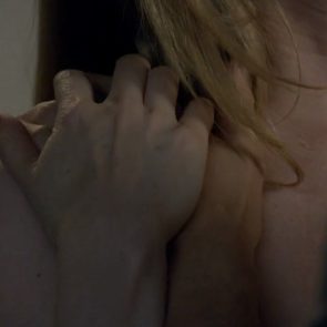 The first scene is from a movie called “The Big C” . In this scene we first see Laura Linneystanding in front of a guy in a bra. She then takes the bra off. She takes the guy’s hands and places them on her tits rubbing them gently!