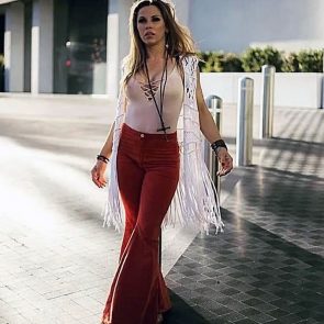Oh boy! Oh boy! We’ve got the uncensored Mickie James private nude images, leaked to the site! And we might tell that this old slut is very exaggerated! When she was pregnant, she took too many selfies! You can see her large breasts full of cream, and man, it’s a bit gross! Maybe she’s just a happy expectant mum, but why is this lady so weird to me? I already know these pics won’t get us hard like the other leaked naked celebs we’ve got, but hey, enjoy the gallery if you like pregnant stomach and boobs with too big nipples!