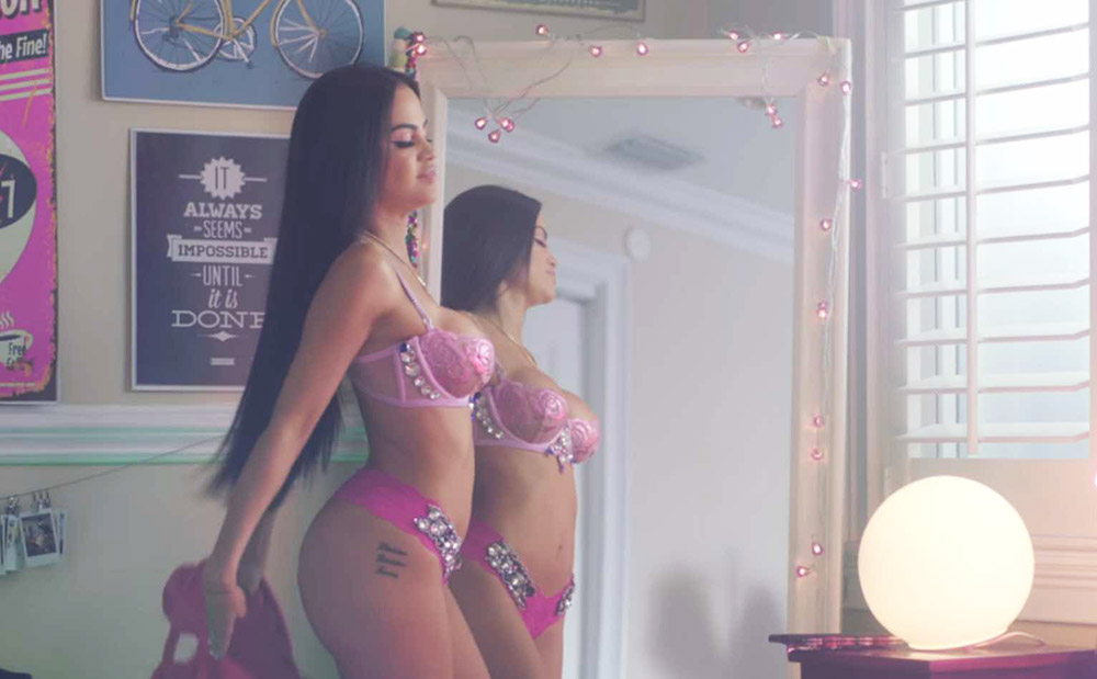 Natti Natasha collaborated with many Latin and American singers. But we like her collab with Becky G the most! These two sluts have a song together. And they made horny the men all over the world with an official music video where they are in lingerie and touching one another. Visit !
