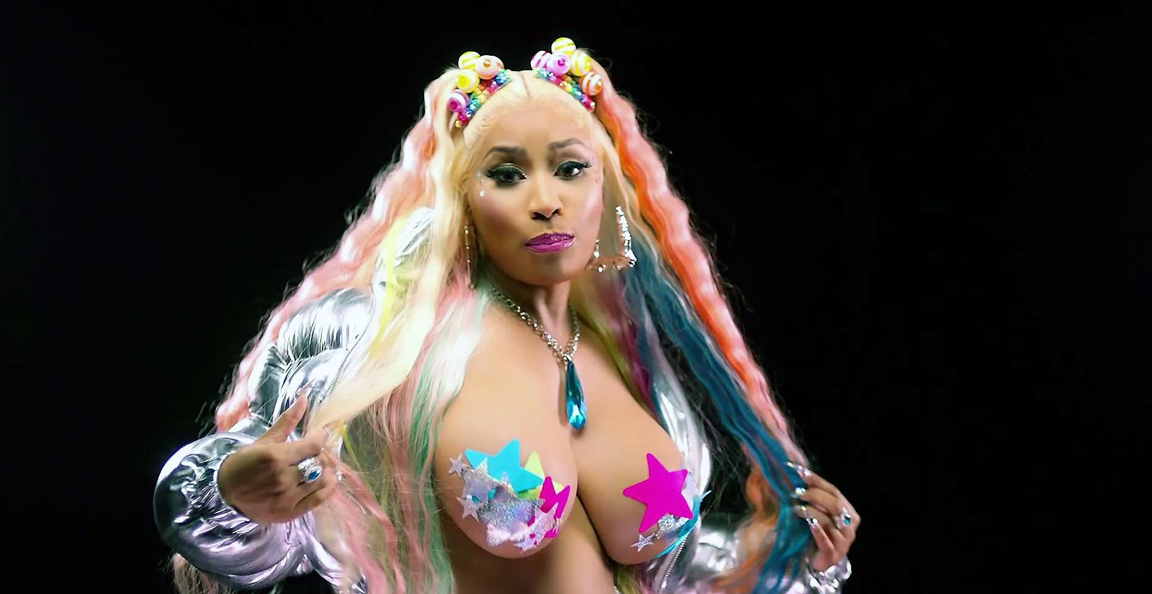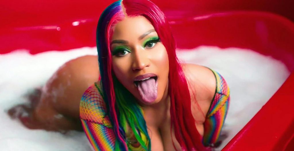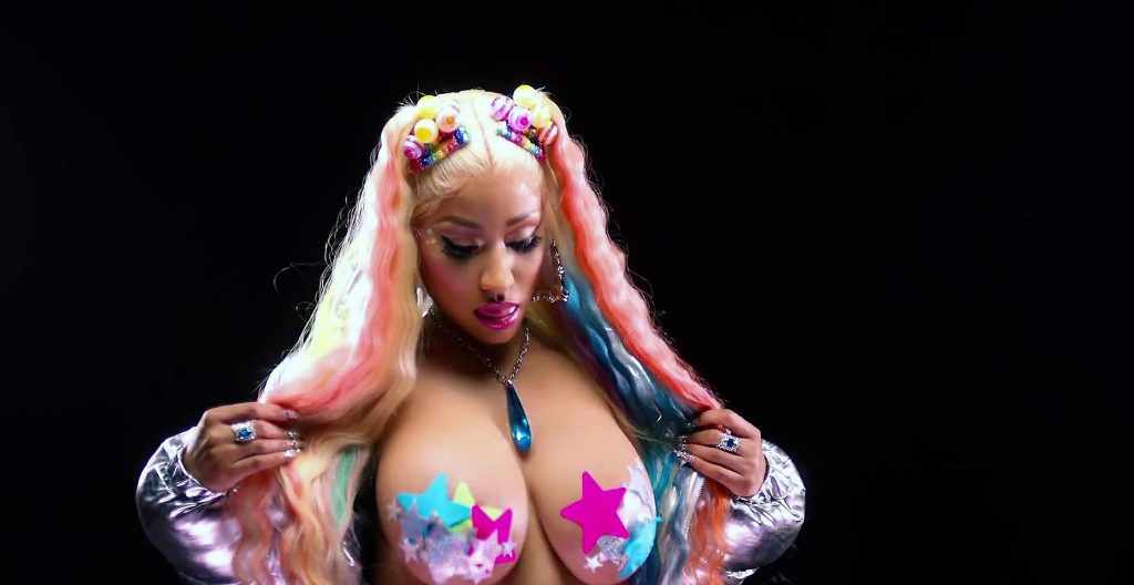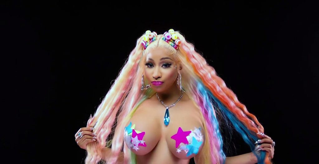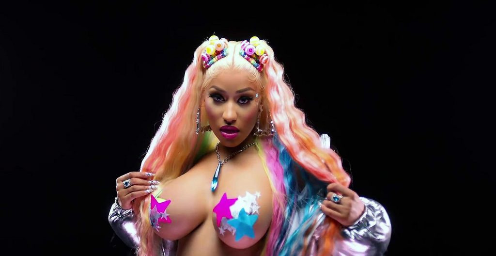 Here’s a gif from this music video! Nicki Minajthem off with just some sticker covering her nipples!