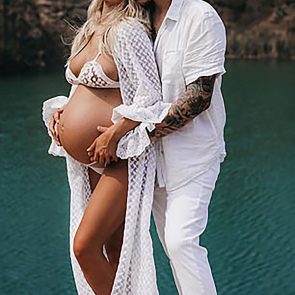 Here are Skye Wheatley nude photos! This milf surprised everyone when she posed nude for her maternity photoshoot! There are two fully nude photos, but on the rest of them she’s wearing very little clothes! On some she’s alone, and on some we can see her with her boyfriend. Which leads us to our next topic – her leaked porn video!