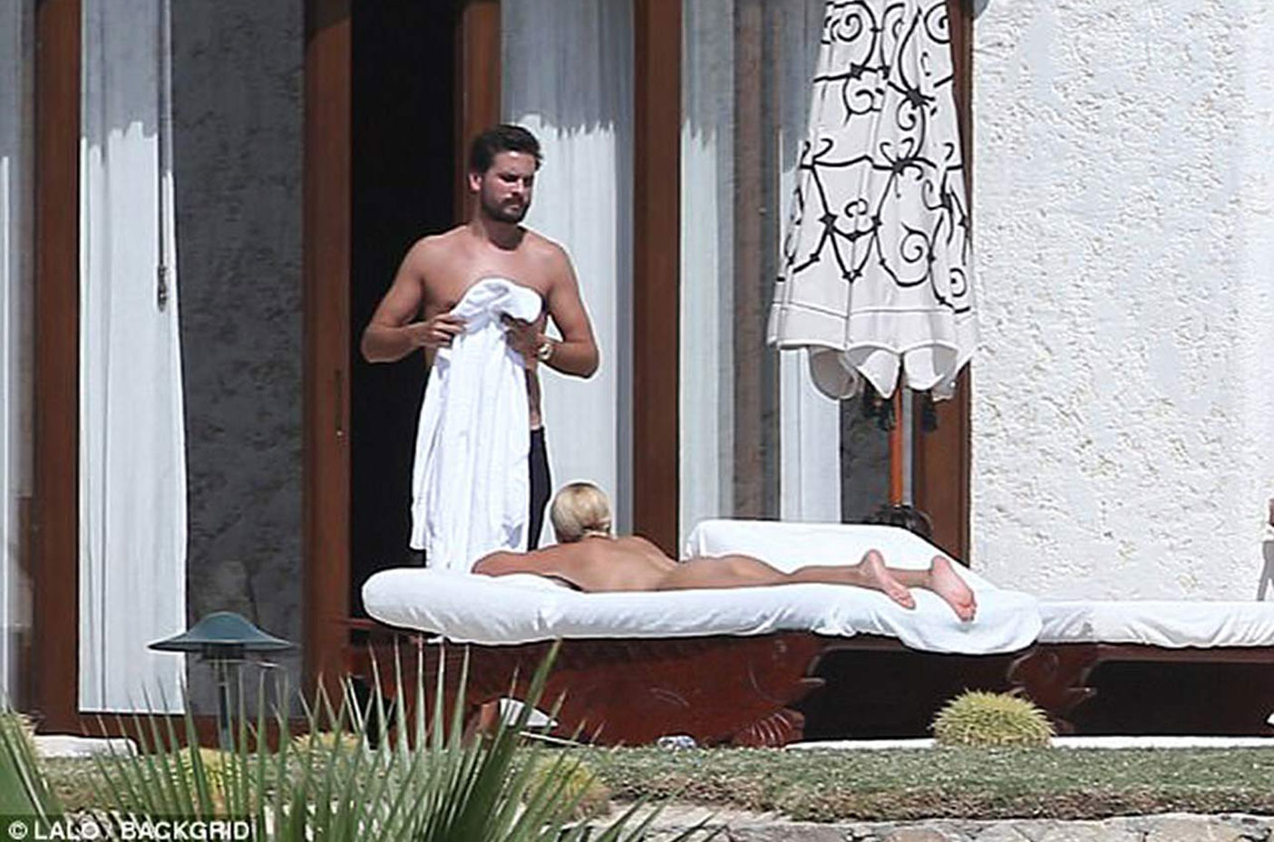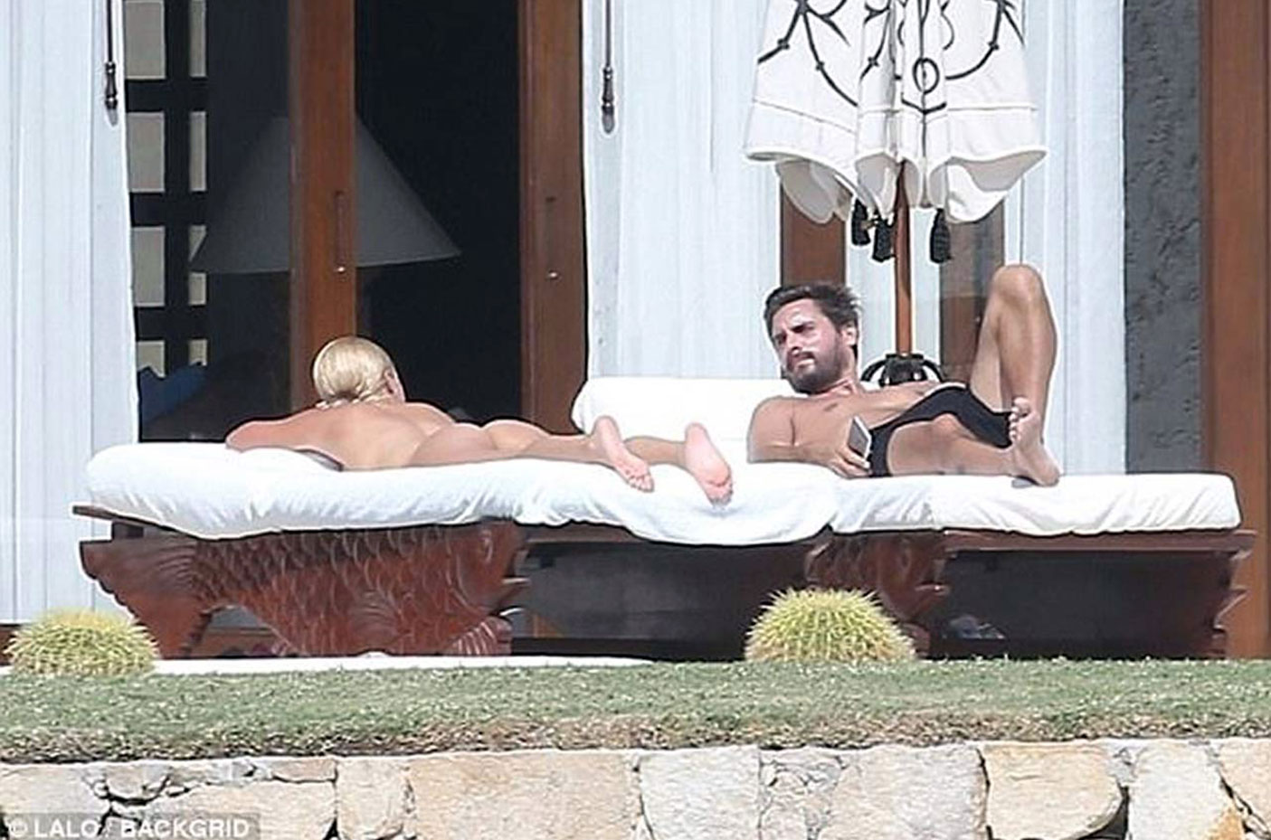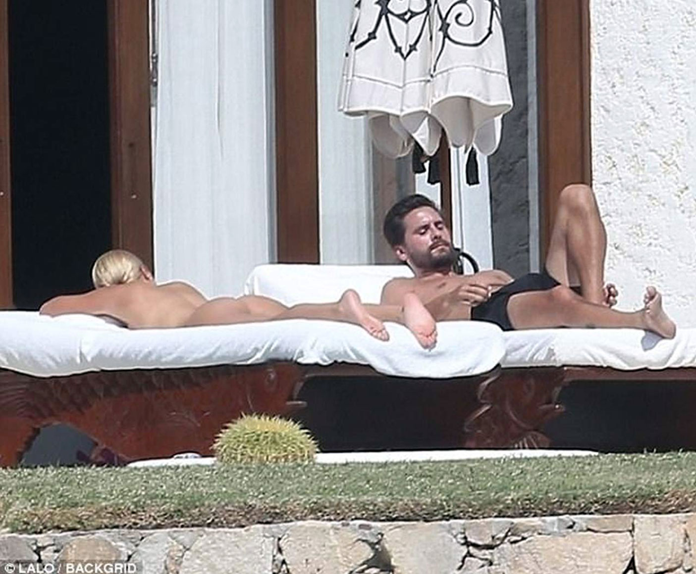 Check these out guys! Here are some photos that some sneaky paparazzi shot when the spotted Scott Disick and his young now ex girlfriend Sofia Richie nude while sunbathing on a terrasse of some hotel they were staying in for for one of their vacations!