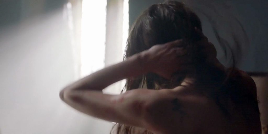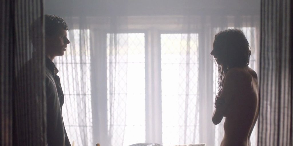 The first scene is obviously from the “Sex Education” series! She actually became popular because of this show, so it’s only right to put it first! We see Tanya Reynolds standing topless in the bedroom behind a man who’s sitting on a bed. After he rejected her since he was gay, she puts on a gray top.