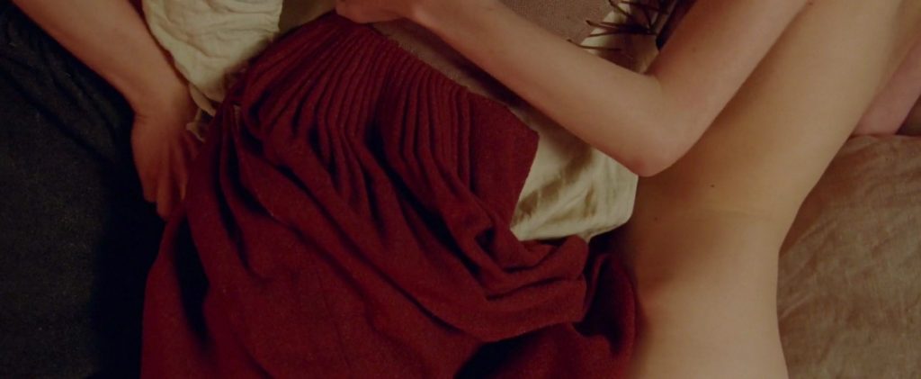 This next scene is from the same movie, and as I learned just now, it’s a part two of the scene from above. Tanya Reynolds lying nude on her side beside some woman, who is dressed and kissing a man on the other side of her. Tanya kisses the woman on her neck while the man takes out his penis and the woman places her hand on it. Finally, the man gets out of bed, and Tanya stays nude, finally sitting up when the woman gets out of bed, too.