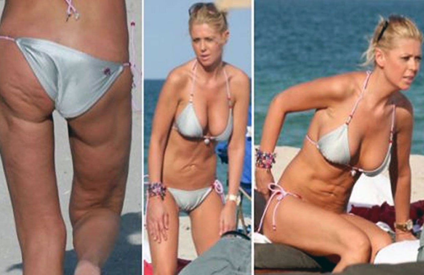 Well, if you ever asked yourself who had the worst wardrobe fail in Hollywood, we’ve got the answer! There are Tara Reid’s bare breasts, and believe me that she slipped like no one before! This nipple slip was declared the worst ever, and we thought it was Tara’s we should be proud! She became famous after ‘American Pie’ and ‘Saved by the Bell: The New Class’ film, where our dear slutty blonde looked beautiful! A little after she began to visit her surgeon, who gave Tara huge tits, as u can see from her nipples scars! Down below u will find Reid’s liposuction images that turned out to be terrible!