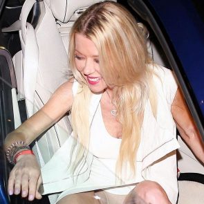 Oh boy, she will never stop making wardrobe malfunctions! We’ve got a new Tara Reid pussy slip from last night! Tara wore a short white dress, and it went up as she was leaving the car! Reid didn’t know it, of course, because paparazzi had a perfect chance to make shots! Flashes were about this bitch, and she thought it was the source of her publicity! Tara was wearing beige panties, and we can see her shaved cunt, it’s as old as hell! So many wrinkles folks, I couldn’t have sex with the pussy like this!