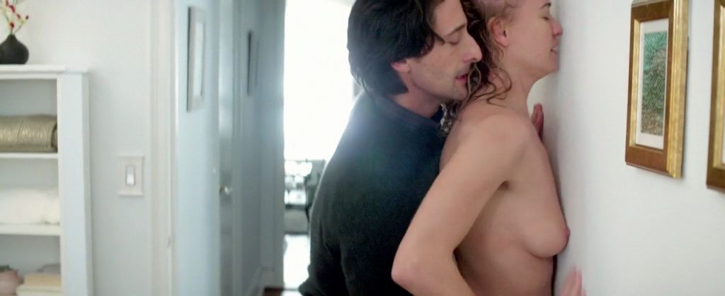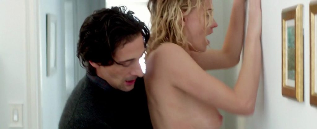 The first scene for today is forma TV series called “Dexter”. In this scene Yvonne Strahovski is lying on a table on her back, nude with a few bands of wrapping paper running across her waist and breasts. A man then cuts her free and as she stands up and takes the guy’s shirt off we see a large portion of her right breast from behind. He then lies her down, and gets to have sex with her on top of her.