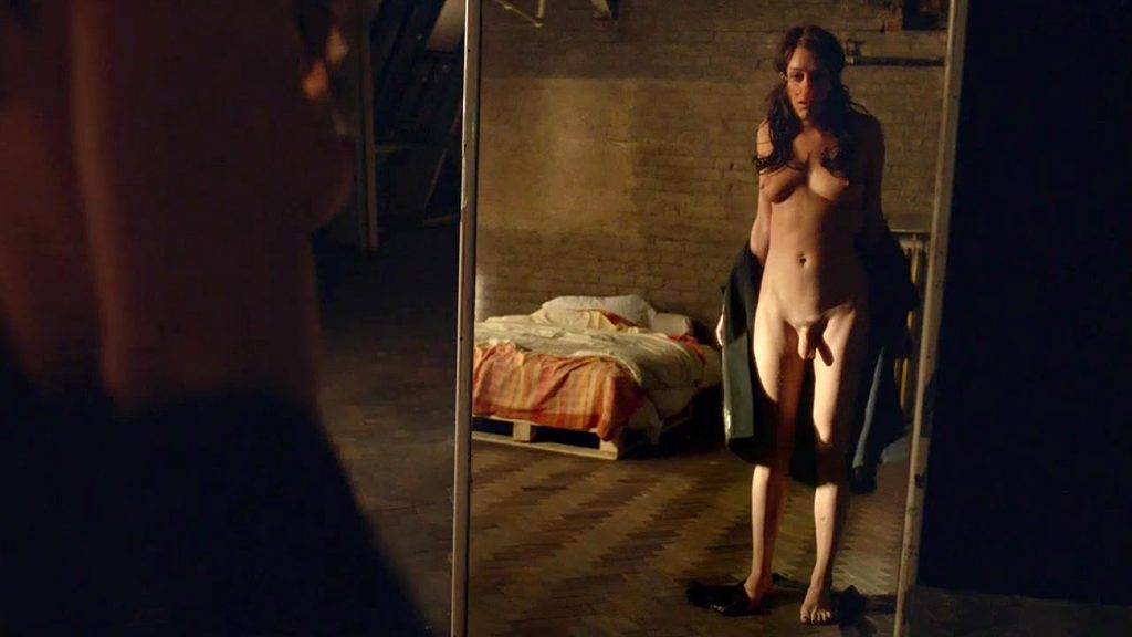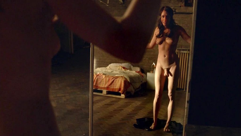 Chloe Sevigny in a hot nude scene shows her large nude boobs and fake penis. Her big tits, perky nipples and dick come to the first plan as she is watching herself in the mirror. Hote nude tranny scene from Hit And Miss. You can see a lot more nude celebs at !