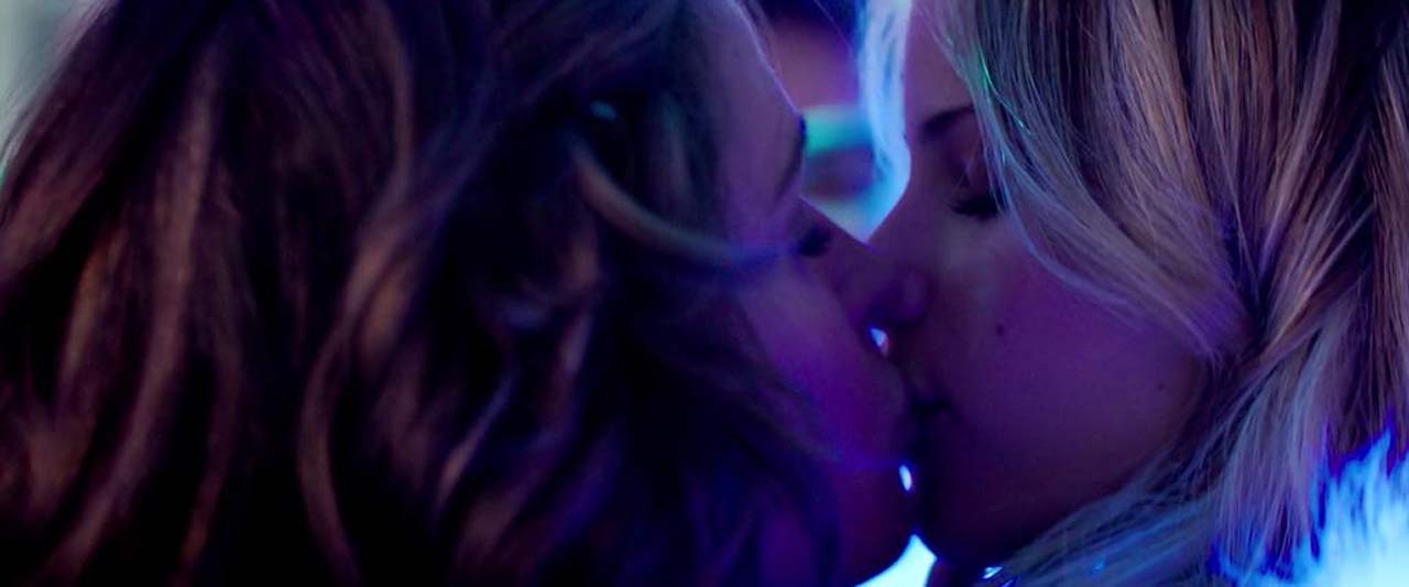 There is Halston Sage sexy scene with Rose Byrne from ‘Neighbors’, where these two are making out with a guy in a threesome on the party!