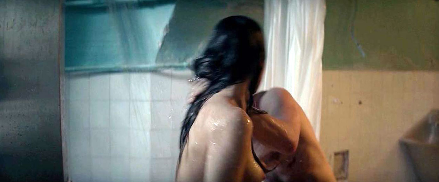 In the next scene, Jennifer is taking a shower, when a guy comes and pushes her. She then turns around and attacks the guy. We can see her fully nude body the whole time.