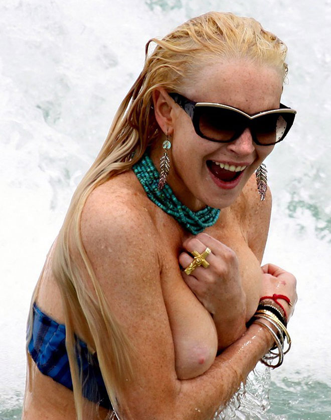 And these pics are just a small part of scandals that were following miss Lohan through her fame. She loves to provoke, and Lindsey loves to be topless while showing her nice big tits.