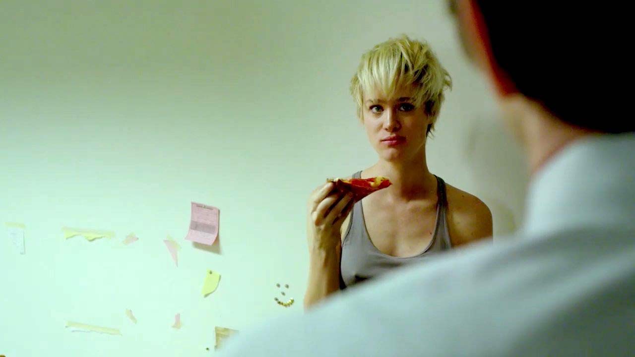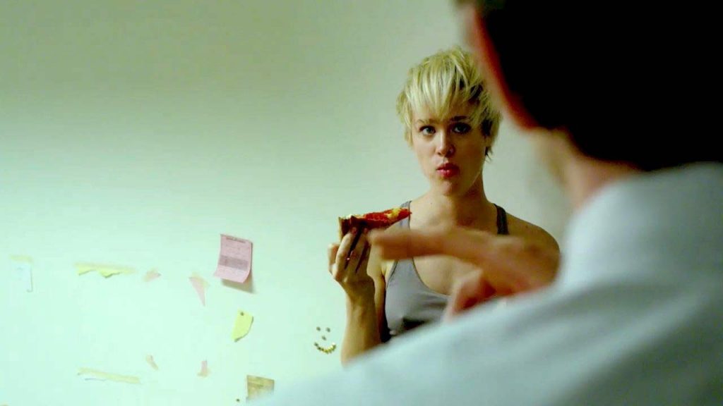 Check out old, but worth seeing Mackenzie Davis braless hot scene from ‘Halt and Catch Fire’, where she’s eating pizza and showing her nipples through top!