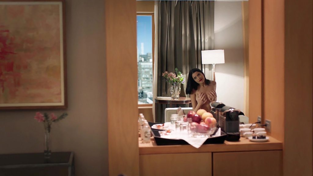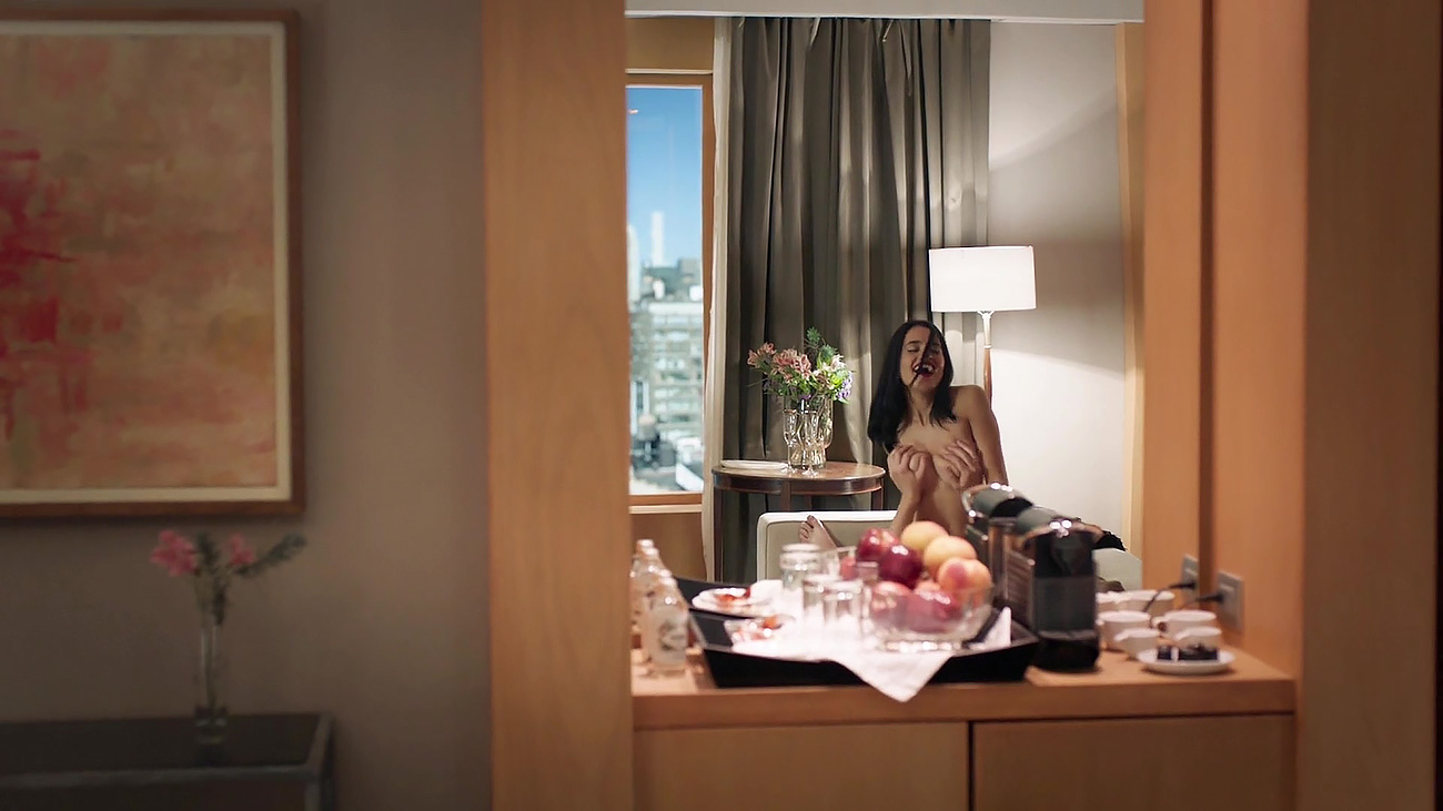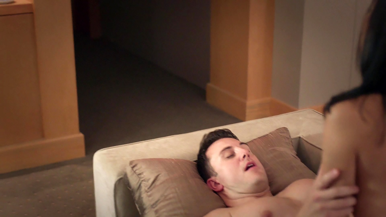 Paulina Gaitan rides her boyfriend on the bed as . She is on the top of a guy and as she is riding him he grabs her large breasts. Nice look at Paulina`s beautiful natural boobs. A great nude sex scene from A Diablo Guardian.