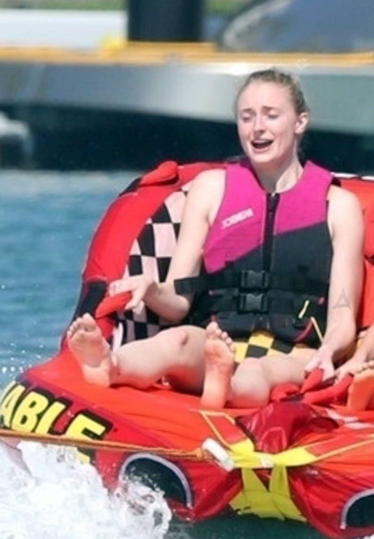 We actually got to see the nude breasts of Sophie Turner in all their glory. In the family pool, she was sunbathing topless. But it hasn’t stopped our paparazzi from catching this wonderful moment. Miss Sophie Turner has huge boobs and she likes showing them, and we love seeing them!